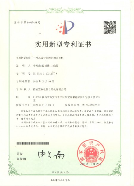 - 關(guān)于我們 - 資質(zhì)榮譽(yù) - 一種高效智能散熱開(kāi)關(guān)柜專(zhuān)利