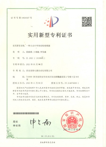 - 關(guān)于我們 - 資質(zhì)榮譽 - 一種大功率窄體結(jié)構(gòu)變頻器專利