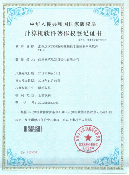 - 關(guān)于我們 - 資質(zhì)榮譽 - 匯創(chuàng)達HCD500系列變頻柜專用控制系統(tǒng)軟件