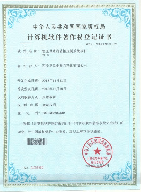- 關(guān)于我們 - 資質(zhì)榮譽(yù) - 恒壓供水啟動柜控制系統(tǒng)軟件