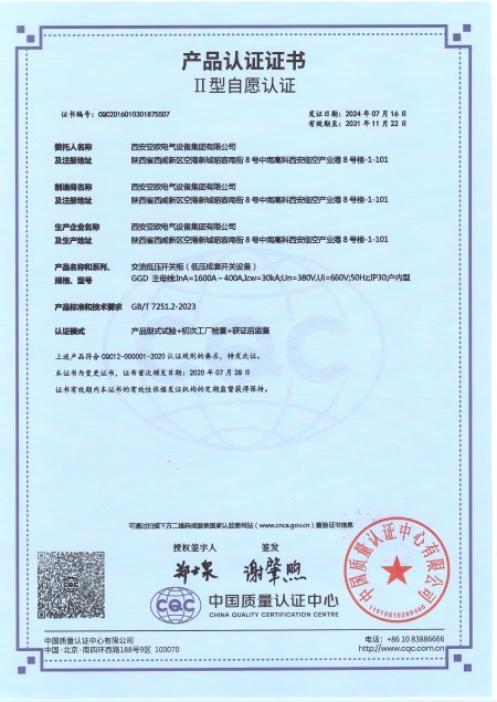 - 關(guān)于我們 - 資質(zhì)榮譽(yù) - 交流低壓開(kāi)關(guān)柜(GGD)資質(zhì)